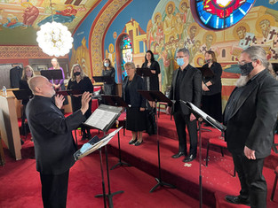 On March 6,2021 - St. Romanos Choir sang "The Divine Liturgy Based on Serbian Chant" by Gennady Lapaev, at the Holy Resurrection Serbian Orthodox Cathedral in Chicago.